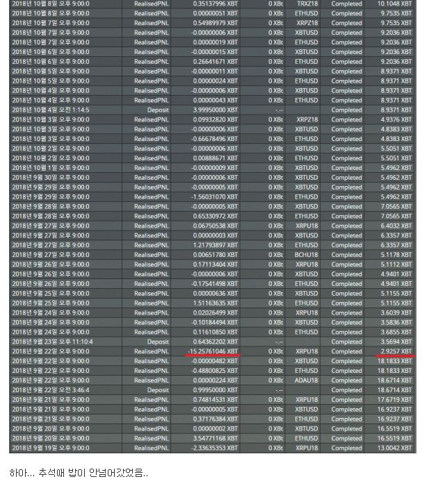 2018년도에 -15비트면 워뇨띠의 재산에서 절반이상은 날라간게 되는데요