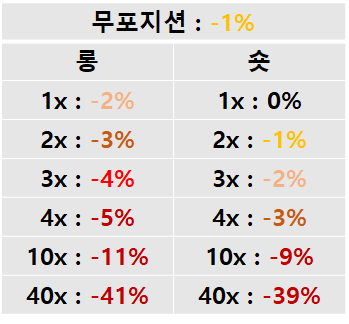 1배롱과 1배숏이 비슷한 리스크로 여겨질 수 있지만, 현실은 1배롱이 훨씬 위험하다.